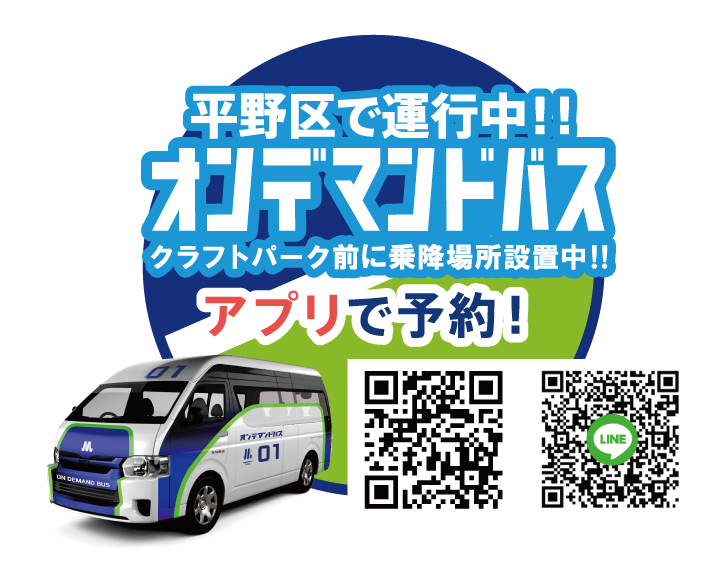 出戸バスターミナルからクラフトパーク目の前の乗降場所へご移動いただけます